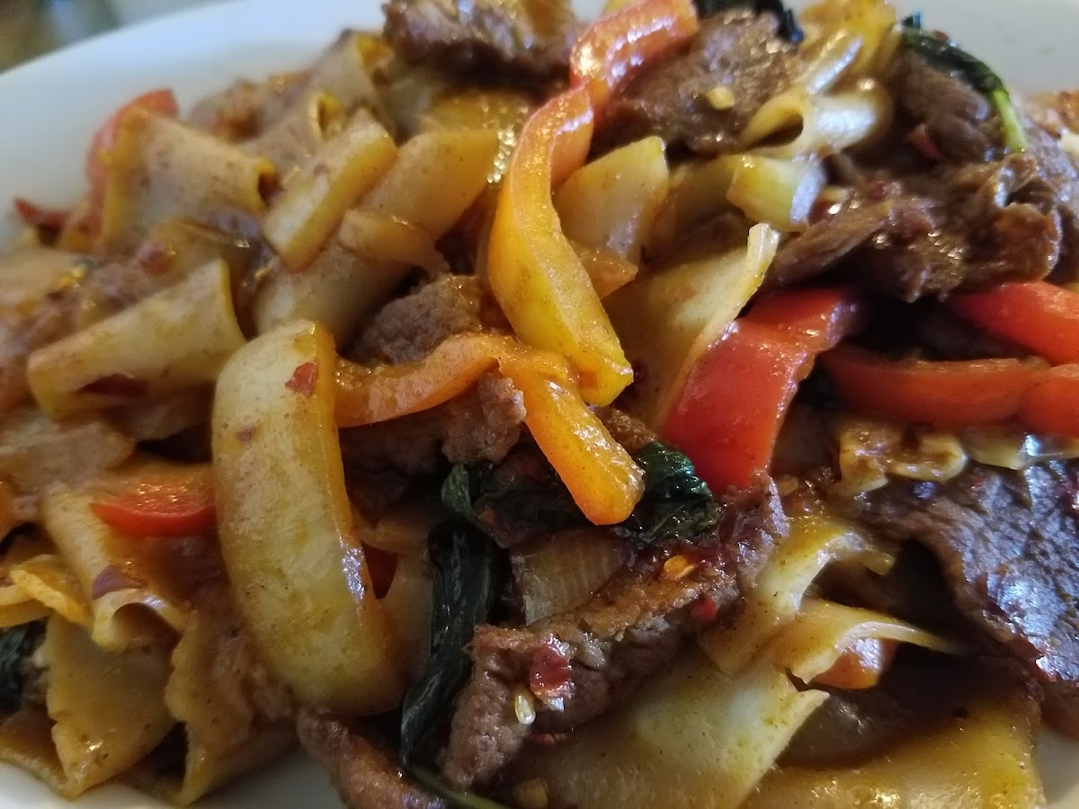For the main course, the Spicy Eggplant is a standout choice. Sautéed with fresh garlic, ground chicken, and bell peppers in a house chili sauce, it packs a punch that resonates with each bite. Alternatively, the Drunken Noodles are a traditional delight, offering a delightful stir-fry of wide rice noodles with sweet basil, ensuring a warm and fulfilling experience.